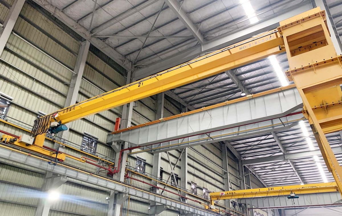 钢结构采用单主梁结构形式,在主梁下部挂一台电动葫芦作起升机构,使得整机轻巧紧凑,节省空间。