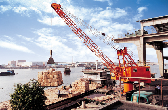 GQ固定式足球现金官方官网可以进行岸与船之间的装卸作业,其工作效率高,作业稳定性好,运转灵活,是内河湖泊理想的装卸设备。特别适用于码头的大量装卸作业,用户可选择配置吊钩或抓斗。采用吊钩或抓斗进行工作,可全工作 幅度带载装卸,如钢材,袋货,木材等。当采用多肢专用吊钩时,可一次吊多件货物。当配电磁吸盘时可吊废钢。